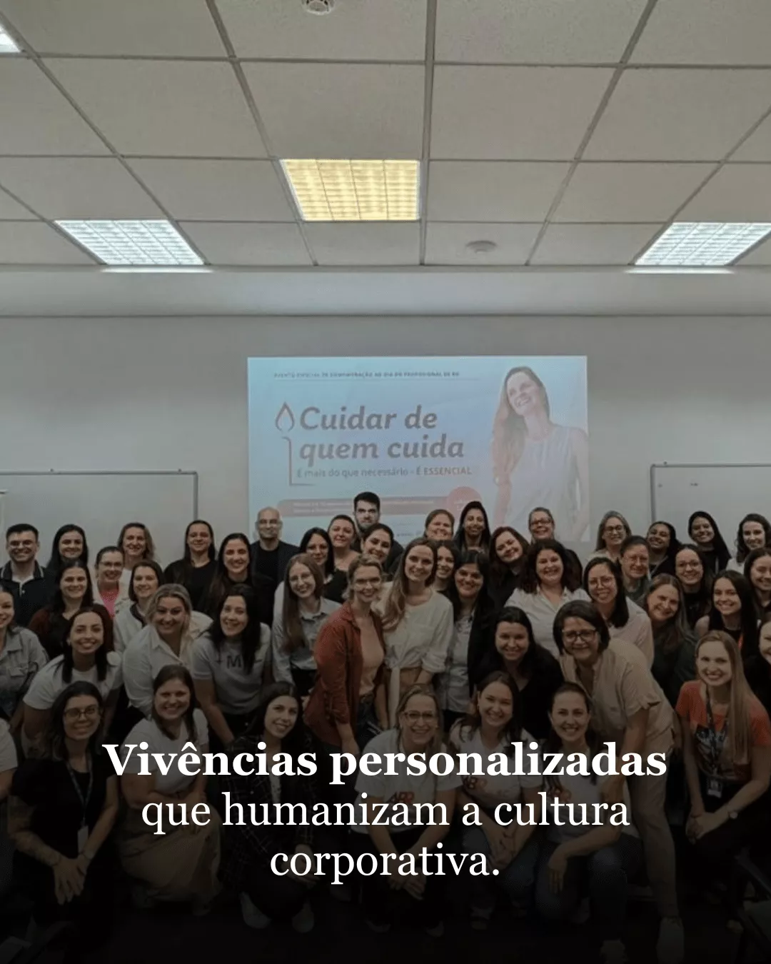 Hoje, levo para organizações tudo aquilo que transformou minha própria história: escuta verdadeira, estratégias práticas e espaços seguros para que equipes encontrem equilíbrio, leveza e bem-estar emocional em meio aos desafios do dia a dia.